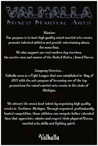 Valhalla has an event coming up in the end of October 2013 with some big names on the fight card, and also with two title fights to award their custom championship belts by ProAm Belts. You can contact Valhalla to fight or for more information and visit their website at ValhallaMMA